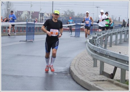 Mijałem sporadycznie zawodników widząc w ich oczach zupełne zwątpienie, każdy z nas zadawał jedno pytanie „maratonie – dlaczego mnie nie kochasz”. Tempo siadało, morale spadało, a kilometry mijały powoli. To koniec, walka się dla mnie skończyła, ale do mety dobiegnę. Z daleka widzę ogromny obiekt, jest to miejsce zakończenia mojej męczarni, ostatni zbieg do Hali Arena i mijam metę, gdzie na zegarze razi po oczach wynik 3:01:39. Nie tego oczekiwałem od siebie. Za metą obfity bufet pomógł mi dojść do siebie a z daleka widziałem już moja prawdziwą miłość, która mnie nie zawiodła, biegnącą w moja stronę żonę.
