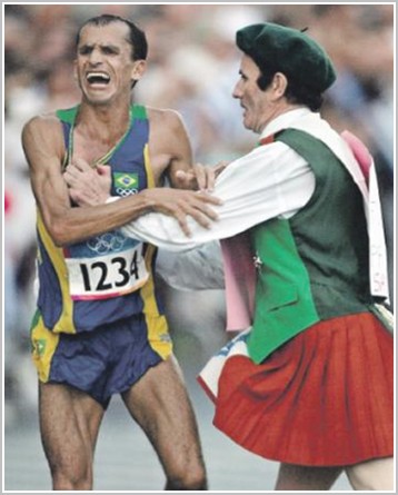 Wszystko zaczęło się na około czterdziestym trzecim kilometrze. Prowadzący z dość znaczną przewagą nad czołową grupą Brazylijczyk został niespodziewanie zaatakowany przez irlandzkiego księdza, który porwał biegacza w tłum kibiców. Po kilkunastu sekundach kibicom udało się obezwładnić napastnika, a zdezorientowany i będący w szoku maratończyk wrócił na trasę biegu. Niestety poobijany i wybity z rytmu nie był w stanie utrzymać prowadzenia do mety. Został wyprzedzony przez Włocha Baldiniego oraz Amerykanina Keflezighiego. Cieszył się jednak z brązu bardziej niż jego rywale ze złota i srebra.