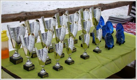 Mając najgorszy bieg w życiu już za sobą, byłem pewny że tym razem pogoda będzie po naszej stronie. I nie pomyliłem się. Udało się wszystko znakomicie. I zawodnicy i goście dopisali. Zwycięzcy otrzymali puchary i nagrody, zawodnicy którzy ukończyli ostatni etap – pamiątkowe medale, a wszyscy razem – pakiety metowe ( na wszystkich biegach są startowe , a u nas odwrotnie ). Po biegu oraz dekoracji, wszyscy ( biegacze, zaproszeni goście, organizatorzy ) mogli się integrować przy ognisku, piekąc kiełbasę. Do tego ciasto, kawa, herbata – co kto lubi.