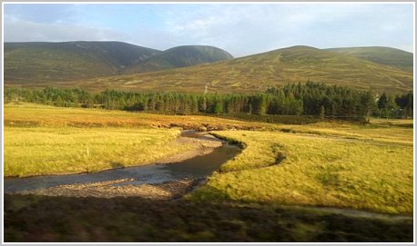 Szkocki krajobraz z okien pociąguJuż sama podróż do Inverness była wyzwaniem. Z Londynu do Inverness jechaliśmy, wraz z moim synem Kubą i siostrą Elą, ponad 8 godzin pociągiem (ponad 900km). Po raz pierwszy w życiu cieszyłem się, że miałem dwie przesiadki w czasie podróży. Na miejsce dotarłem ok. godz. 18. w wieczór poprzedzający start. Zanim trafiliśmy do hotelu, znaleźliśmy miejsce w jakiejś zatłoczonej knajpce i coś wrzuciliśmy na ruszt (tłusta pizza to zdecydowanie nie jest dobry wybór na danie przedmaratońskie - cóż, jak się nie ma co się lubi to…) była już godz. 21.00