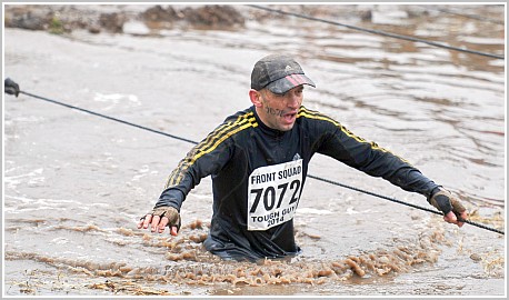 Nie pamiętam dobrze tego momentu, ale wychodzę na brzeg. Biegnę przez pole rozrzuconych zużytych opon (jakiś wulkanizator chyba miał ich w nadmiarze) ale i tak nadal nie mogę rozgrzać swojego ciała, nawet kiedy przebiegam obok palonej się słomy. Kolejna przeszkoda to 70 metrów czołgania się pod drutem kolczastym w błocie (ostatnio robiłem to 27 lat temu w wojsku). Jestem już blisko mety, ponieważ widzę zegar z czasem, ale czeka mnie jeszcze kolejne wejście na wyślizganą górkę i zjazd po gumowej macie, nad którą wiszą sznurki pod napięciem w dół do małego jeziorka. Wciągam się po lince i jestem na mecie!!! Ukończyłem ten ekstremalny bieg o przetrwanie, ale tak naprawdę to nie pamiętam co było dalej (tylko z relacji rodziny, która mnie bardzo wspierała), bo hipotermia całkowicie zabiła mój system pamięci.