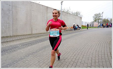 Zaczynam odczuwać, że to już druga połowa – nogi robią się ciężkie, bananowy uśmiech ustępuje miejsca skupieniu, wypatruję kolejnych znaków i wolontariuszy z izotonikiem, bananami i wodą. Zmieniają się towarzysze biegu przy moim boku, ale z każdym udaje się zamienić kilka zdań. Mijają kilometry... noga za nogą... Wsłuchuję się w siebie, w to co podpowiada mi moje ciało, głowa… czy nic nie boli, czy nie chce mi się pić, czy nie jest zbyt zmęczona. Z radością odnotowuję, że nic co mogłoby pokrzyżować moje plany się nie dzieje. W pewnej chwili do moich uszu dociera moje własne imię. Przez muzykę przebija się okrzyk – biegnij Asia, biegnij!