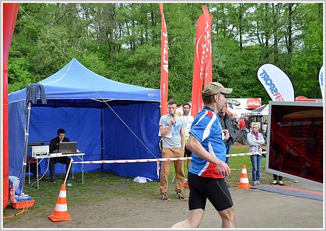 Czuję ja podłoże lekko się ugina pod każdym krokiem zmuszając użycia przynajmniej 20% większego wysiłku w każde „depnięcie”. Ale i tak biegnie się super. I już widzę 9 kilometr. Na stoperze ponad 46 minut. Czyli szans na zejście poniżej 50 minut nie ma żadnych. Ale i tak staram się przyspieszyć. Już nawet nie rozglądam się zbytnio za często wypatrywanymi widokami. Czuję już zbliżający się z każdym krokiem zapach mety. I już widzę charakterystyczną bramkę. Przyspieszam, ale dosyć ciężko to wychodzi. Jeszcze krok szybciej, jeszcze metr, jeszcze dwa i już jest meta. Wbiegam, od miłej i jakże urokliwej wolontariuszki otrzymuję symboliczny medal. Może jakość w porównaniu z innymi za inne biegi otrzymane, nie jest zbyt wysoka, ale nie jestem aż takim gadżeciarzem, by wpływało to na ocenę całości. Zresztą, jak już kiedyś pisałem u mnie medale wiszą w toalecie na lampie nad lustrem. Takie moje lustro chwały. No, ale zdaję już chip, biorę drożdżówkę i wodę i trochę regeneruję siły.