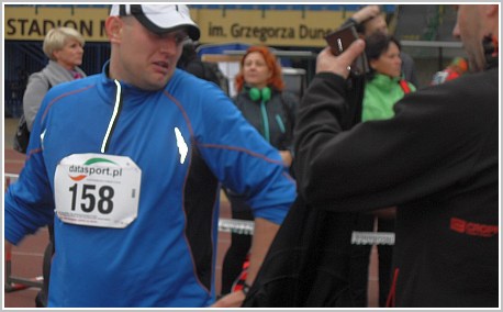 Kiedy przekroczyłem 38 km, zegarek wskazywał średnią biegu 5:37min/km, wiedziałem, że na pewno złamię 4 h. Bieg nie sprawiał mi już problemów, a 40 km przyszedł szybciej niż myślałem. Ostatni kilometr miałem najszybszy 5:24min/km. Robiąc ostatnie 200 m na stadionie biegłem jak w transie, nie ukrywam łza mi się uroniła. Mój oficjalny czas to 3h:57m:23s. Na mecie czekali na mnie żonka z synkiem, tata i znajomi, którzy czekali specjalnie za mną.