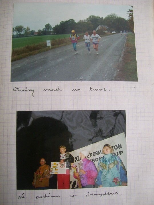yacoll | | | | Autor: henry, 2014-11-06, 14:30 napisał/-a: Tak jak obiecałem zamieszczam zdjęcie z podium . Na pierwszym miejscu Maria Bąk Niemcy na drugi Maria Ostrowska Ukraina na trzecim Nina Mitrofanowa z Rosji na czwartym moja małżonka Elżbieta. Przy okazji wspomnę ,że było o co walczyć szczególnie wśród mężczyzn , Andrzej Magier zwycięzca otrzymał Opla Corze natomiast drugi Rysiu Płochocki fiata 126 p. Kobiety dostały nagrody pieniężne za pierwsze miejsce chyba 5 milionów. Moja żona otrzymała za 4 miejsce milion i nagrodę rzeczową . Oczywiście jak widać wszyscy otrzymywali olbrzymie kryształowe puchary wykonane specalnje na ten bieg z wygrawerowanym opisem. Na górnym zdjęciu Elżbieta na trasie w towarzystwie kolegów.
