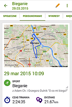 Trasa 10. PZU Półmaratonu Warszawskiego zapisana na moim Endomondo :)