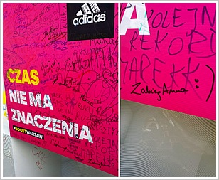 Czas jest nieważny! Dostaję gratulacje i medal od Wolontariuszki. Idę dalej, do końca nawet nie wiedząc gdzie, bo jednak byłam trochę oszołomiona. Usłyszałam, że jeden ze sponsorów zachęca do pozowania na swojej ściance. Pozować nie pozowałam, ale zostawiłam na ściance swój podpis.