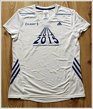 I tu pojawił się dylemat czy pobiec w niej, solidaryzując się z innymi biegaczami, czy może w innej... Kiedy wiele tysięcy biegaczy ma na sobie podobny strój, to ma to dla mnie swój urok. Ma się wtedy jeszcze większe poczucie wspólnoty z innymi biegaczami. Jednak, szczerze mówiąc, tak na pierwszy rzut oka, koszulka nie przypadła mi za bardzo do gustu. Jest za mało różowa (różowy to mój ulubiony kolor jeśli chodzi o strój i gadżety do biegania;)). Żartuję, po prostu rozmiarowo to nieco wyrośnięte "M" i jest na mnie trochę za duża ("M-ka" za duża - jak cudownie to brzmi;)). I grafika, co prawda oddająca ideę dekady tych zawodów, jakoś mnie nie zachwyciła, ale de gustibus non est disputandum... Poza tym, pomyślałam sobie, że będę mieć o wiele większą przyjemność z noszenia tej koszulki, kiedy już przebędę dystans półmaratoński na własnych nogach. Koszulka czeka więc na swoją biegową premierę, a ja ostatecznie zdecydowałam się pobiec w koszulce adidas Supernova W #climacool od SKLEPBIEGOWY.COM. Ma piękny, energetyczny fioletowo-różowy kolor :)