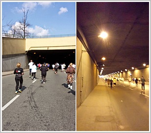 Kawałek za punktem odżywiania swoje ciemne wnętrze otworzył przede mną tunel na Wisłostradzie. Było w nim trochę rześko, ale właściwie to można było odpocząć od wiatru i nieco się w nim orzeźwić. Postanowiłam, że po wybiegnięciu z tunelu zacznę przyspieszać. W mojej głowie zaświtała myśl, że może uda mi się pobiec poniżej 2 h 20 min i spróbuję dogonić tę grupkę.