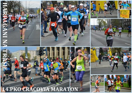 W Krakowie biegamy dwie pętle. Szczerze to ja nie lubię biegać pętli, ale jest tego jedyny dla mnie plus Kibice. Wszędzie jest ich pełno, krzyki, gwizdy,trąbki.Cały ten gwar niesie nas zawodników jak na skrzydłach, i oczywiście mój prywatny„paparazzi” Agnieszka która jest w swoim żywiole „ostrzeliwując” po kolei znajome, i nie tylko, twarze. Jest dobrze, utrzymuję dobre tempo, na każdym kilometrze powiększając zapas czasu. Żele energetyczne działają, chociaż miałem pewne obawy bo nie przetestowałem ich przed maratonem. W międzyczasie z zadumy wyrywa mnie Magda krzycząc - dawaj Paweł! A tuż za nią biegnie Dorotka z ekipą Duchów. Cisnę dalej oddech równy. Cieszy mnie to bo ostatnio miałem z tym lekki kłopot, ale jak to mówią maraton zaczyna się po 30 km i to fakt 32 km lekki kryzys spada tempo zaczynam lekko tracić założone sekundy.