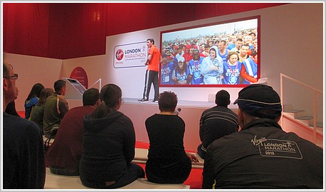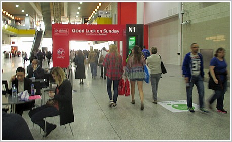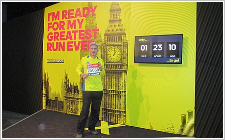 W czwartek przed maratonem udałem się do wschodniego Londynu, gdzie w ogromnym centrum targowym ExCeL odebrałem swój nr startowy (25085) i chip na buty (zupełnie inny niż dotąd spotykałem, prostokątny, ok. poł. karty kredytowej). Oczywiście pokręciłem się po targach EXPO, popijając i degustując próbki towarów prezentowane przez wystawców. Oczywiście dałem też szansę szczęściu biorąc udział w kilku loteriach i zebrałem trochę różnych ulotek. Na targach dużo było stoisk organizacji dobroczynnych zbierających pieniądze na szczytne cele, np. na walkę z różnymi chorobami. Organizacja targów jak i w ogóle całego maratonu było wg mnie perfekcyjne, żadnych błędów, uchybień. Dużo było pomocnych wolontariuszy i osób z miejskich służb z praktycznymi informacjami, (np. nr startowy BIB zapewniał od 6.50 do 17.00 bezpłatny transport po całym Londynie wszystkimi środkami transportu miejskiego, był nawet specjalny transfer kolejowy w pobliże miejsca startu). Dlaczego np. w Warszawie nie można tego uzyskać, podobno rozwijamy się dynamicznie (tak podają główne media), ale w organizacji maratonów mamy jeszcze wiele do nadrobienia, trzeba się dalej starać.