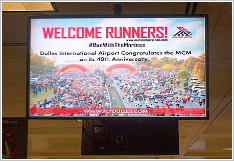 Powitanie na telebimie uczestników MCM, lotnisko Dulles w Waszyngtonie