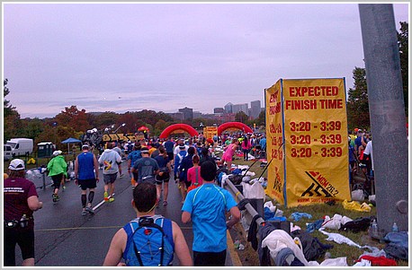 Mój czwarty maraton poprzedziły nieudane zawody półmaratonowe i 20-milowa przeprawa wzdłuż brzegu Potomaku, po której spodziewałem się medalu równie wielkiego, jak zmęczenie na mecie, ale musiałem zadowolić się koszulką i… sporym bajglem zanurzanym w kotle z serkiem Philadelphia. Tak! Biegi klubowe i lokalne stawiają bowiem na cięcie kosztów i skupianie się na wspólnej zabawie, a nie na obwieszaniu uczestników żelastwem oraz zarzucaniem ich ulotkami i reklamami. Pytałem o to współbiegaczy, czy nie mają ochoty i potrzeby otrzymania medalu lub chociażby zachowania numeru biegowego (członkowie klubów dostają jeden bib na cały sezon), aby mieć „namacalne” wspomnienia z zawodów. I dostawałem zawsze jedną i tę samą odpowiedź: po co? Przecież to dodatkowo kosztuje, to tylko symbol, a liczy się uczestnictwo, aktywność fizyczna i wspomnienia – chętni mogą przecież zawsze zrobić sobie fotografię w trakcie albo po biegu. Posiadając w Polsce całą galerię medalowo-numerową trudno jest mi przyzwyczaić się do tego rozwiązania. Amerykanie inaczej celebrują radość z biegania. A to chyba o to chodzi (biega)…