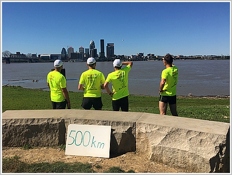 Rano po pysznym śniadanku, odwiedziliśmy imponującą siedzibę North Oldham Lions Club i przez zabytkowy most na rzeką Ohio, z flagami Polski, USA i UE wbiegliśmy do Indiany. Szacunek Amerykanów dla flagi jest tak ogromny, że przypadkowi przechodnie widząc nas przystawali, a niektórzy nawet nam salutowali.