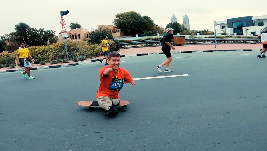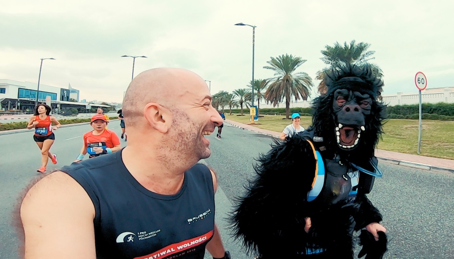 Z maratonu w Dubaju, w którym wystartowałem w styczniu 2020 roku, niewiele pamiętam – wszak było to już prawie pięć lat temu. Teraz, gdy zmontowałem film poświęcony tej imprezie, przypominają mi się pewne zdarzenia: kumple z wojska, facet przebrany za wielbłąda, ładna Azjatka. Największe wrażenie zrobił na mnie jednak mężczyzna, który przebiegł ten maraton choć nie ma ani nóg, ani rąk. Jego nie zapomniałem ani na chwilę, i wciąż mam przed oczami obraz, jak pokonuje dystans maratonu siedząc na deskorolce odpychając się od asfaltu kikutem.
