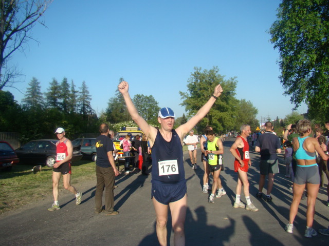 Chyba trochę poczułem smak sukcesu, bo długo nie czekaliśmy na kolejny start. Razem z Dario_7 i Marysieńką już na następny dzień (03.05.2009) pojechaliśmy do Zbąszynka na zawody i na 32 zawodników byłem 15 - dystans 8,8km z czasem 34:32. Oprócz tego udało mi się prześcignąć Dario_7 i Marysieńkę (dali mi fory :-)) i cały czas czułem ich oddech za plecami ( i gremlinek Marysi co kilometr, tididididi :-)). Na zawodach spotkałem jeszcze Biegulę, z którą się widziałem ostatnio ponad 10 lat temu. Było świetnie; czułem zmęczenie ale byłem bardzo zadowolony, nie tylko z wyników ale przede wszystkim, że po latach mogłem się spotkać ze ,,starymi" znajomymi, i że mnie jeszcze pamiętają.