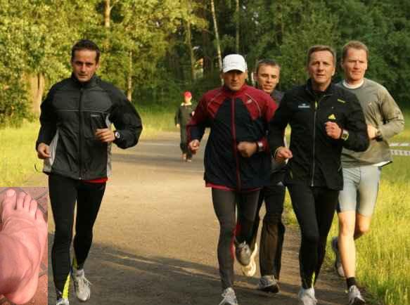 Na zdjęciu obok (20.06) ostatni trening przed zerwaniem torebki stawowej (rozgrzewka przez planowanym biegiem na 10.000), no i noga po treningu. Żenada na maksa, a była szansa startu w tak doborowym towarzystwie:(