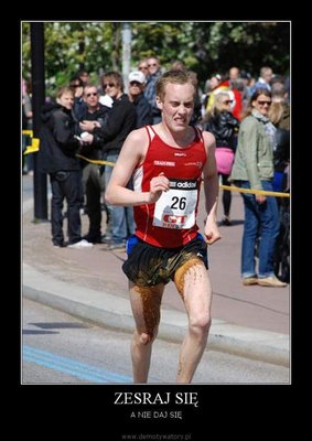 Następnie troszkę pani odskoczyli¶my i tak do 39km znów mi ciężko się robiło i Paweł mi uciekł, nie dużo ale był 3 min lepszy na mecie, choć to dla niego był słaby wynik z powodu biodra ale jak na debiut nie Ľle się spisał. Najlepiej z naszej ekipy wypadł Arek też debiutant 3:42.