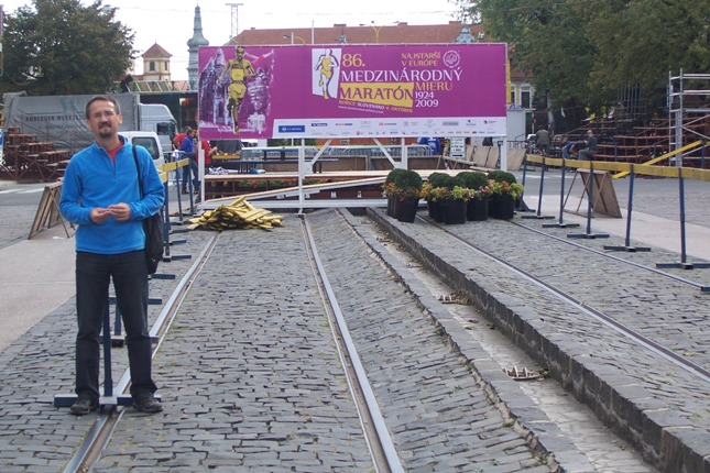 Znów w Koszycach! Wła¶ciwie jest to obecnie moje drugie rodzinne miasto. Mam tu naprawdę wielu znajomych, a wielu miejscach czuję się jak u siebie. Mój słowacki też się poprawia, tak więc wielu biegaczy traktuje mnie tu już prawie jak swojego. Tak odebrałem spotkanie z Frantiskiem Kandr± i Jaroslavem Hornym przy zapisie do maratonu, spotkanie z Peterem Bucem na Hlavnej. Podobnie było w szatni, na rozgrzewce, na trasie.