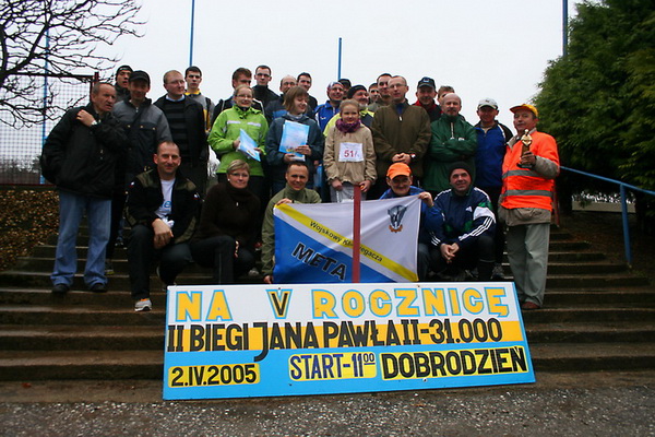 02.04.2009 - w WIELKI PIĄTEK, o godz.11.00 odbyła się II Dobrodzieńska Sztafeta dla Papieża – 31000. Skąd taka nazwa? Otóż Jan Paweł II żył 31 000 tysięcy dni, stąd wzięła się łączna długość dystansu do przebiegnięcia, wynosząca 31km czyli 31.000 metrów.