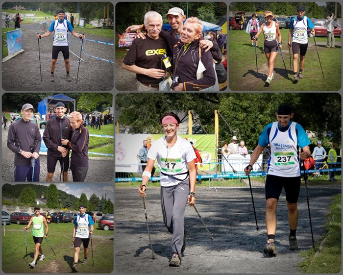 Po dojechaniu na miejsce powędrowaliśmy do biura zawodów, by potwierdzić obecność i odebrać pakiety startowe… Ludzi było sporo i wtedy Darkowi nieco wymiękły nogi i prysły o starcie zamysły… ;))) Ja z Marysią byliśmy konsekwentni i nie wymiękliśmy ;) Próbowaliśmy Darka przekonać, ale ten szedł w zaparte… będę robił zdjęcia, odrzekł… Okey, nic na siłę… Na oba dystanse miałem wystartować tylko ja, więc powoli musiałem się przygotowywać do swojego debiutu… W międzyczasie tak komplementowaliśmy z Marysią te całe ”kijkowanie”, że nawet Dario ponownie zaczynał nabierać ochoty… przełamał się, i pognał do biura raz jeszcze, zapisać się… bodajże jako ostatni na minuty przed ostatecznym zamknięciem zapisów… ;) Eeeech… cośmy się uśmiali… ;)))
