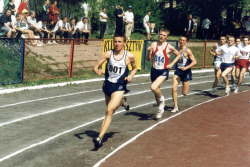 PS: Ostatnio przegl±daj±c stronę www mojego liceum znalazłem listę zasłużonych sportowców. Z dum± zobaczyłem, że widnieje na niej także moje nazwisko! Rado¶ć była tym większa, że ci „naj-zasłużeni” mieli także foto. Obok widzicie miting w Łęczycy z 2000 r. Na żużlowej bieżni trwa bieg na 1000 metrów. Na prowadzeniu Mariusz Giżyński (tak ten! dwunasty maratończyk Europy, absolwent tej samej szkoły), tuż za nim nr 614 Dymek. Fantazja mnie poniosła na pocz±tku (200 metrów w 28 sek), potem „trochę” spuchłem. Mariusz wygrał z wynikiem 2:31, ja byłem trzeci z życiówk± 2:41. To były czasy…