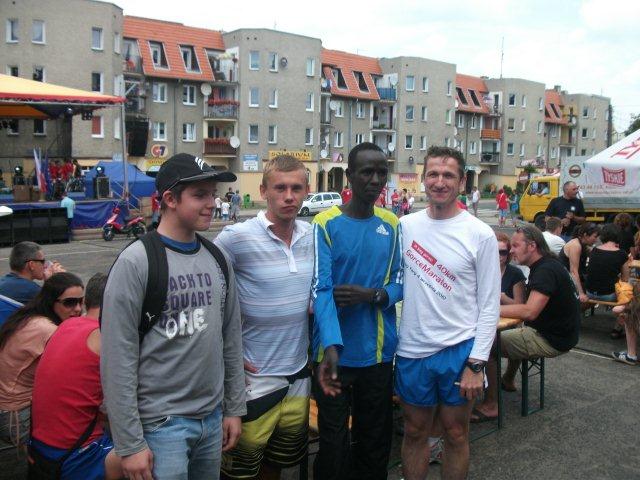 przyjemnie orzeĽwiała rozgrzane ciała, natomiast po biegu można było wypić mrożon± kawę, która zmęczonych dystansem od razu stawiała na nogi. Ukończenie dystansu gwarantowało otrzymanie gromkich braw licznych kibiców jak i wspaniałego medalu. Na mecie jako pierwszy pojawił się Kenijczyk Elisha Kiprotich Sawe z nowym rekordem trasy 1.07.48h pobitym o