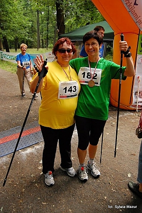 No, i stało się. Zadebiutowałam w Nordic Walking. Wystartowałam razem z koleżanką na dystansie dla amatorów 3,6 km. Potraktowałyśmy nasz start z przymrużeniem oka, ale od początku koleżanka uskarżała się na ucisk w łydce. Zeszłyśmy na moment na bok, nawet przysiadłyśmy na ławce. Panie i panowie uciekali nam zamaszystym krokiem. Ruszyłyśmy ostrożnie zamykając pielgrzymkę. Powoli koleżanka dochodziła do siebie i ucisk w łydce puszczał. Gadałyśmy cały czas (jak to mamy w zwyczaju), życie w parku toczyło się swoim rytmem. Mijałyśmy kolejne panie sędziny, które sprawdzały czy idziemy zgodnie z przepisami;) Na drugim okrążeniu zobaczyłyśmy plecy ostatnich pań i zauważyłyśmy, że odległość między nami się zmniejsza. Plan minimum, żeby nie być ostatnią na mecie zaczął nabierać realnych kształtów;) Wydłużyłyśmy krok pamiętając o tym żeby nie podbiegać (sędziny już czyhały z czerwonymi kartkami;). Po jakimś czasie zrównałyśmy się z ostatnimi zawodniczkami a na metę weszłyśmy ze sporą przewagą nad nimi. Nie muszę dodawać, że panie były z uniwersytetu III wieku:)