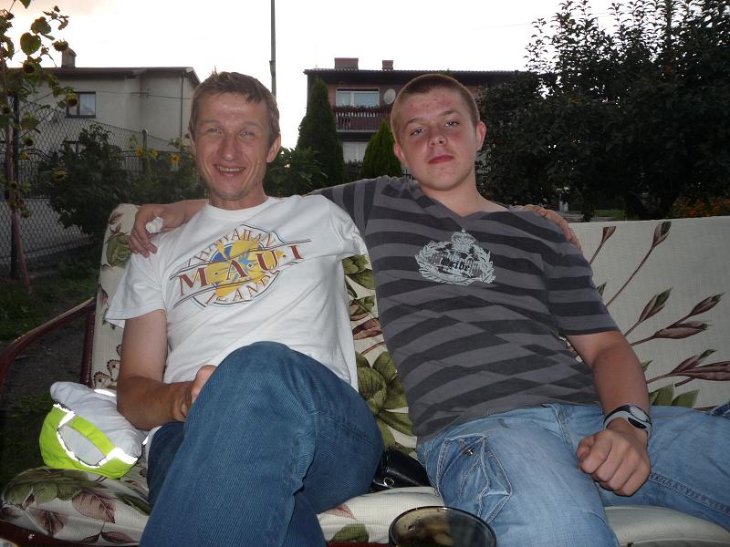 na trening ze mn± i timonem.Po długich namowach w końcu się zgodził bo miał interes do Timona z kupnem zegarka który potem odkupiłem od Johna za 2/3ceny.Przyjechał do mnie 1wrze¶nia o godzinie 17:03 by zrobić pozytywny trening ze mn± na pocz±tek roku szkolnego.Niestety Timon by jeszcze więc pierwsze zawitał do mnie.Gdzie¶ tak o godzinie 17:15 wyruszyli¶my na trening z tempem troszkę zabójczym dla mnie bo wynosiło ono 5 km/min.W czasie treningu spotkałem paru znajomych oraz Timona który wracał z Pracy.W trakcie biegu John udzielił mi parę wskazówek jak biegać za które jestem bardzo wdzięczny.Nasza trasa wynosiła 7km i prowadziła przez Bluszczowy.Rekord tej trasy wynosi 45min ale dzięki Johnowi pobiłem go i ustanowiłem nowy lepszy z czasem 40min 26sekund.Pod koniec biegu czyli ostatnie 60metrów zrobili¶my sprintem z tempem 4:06.Po biegu byłem bardzo zmęczony ale po kilku minutach organizm już doszedł do normy.Timon poczęstował nas wypiekiem od swojej mamy i sokiem grejpfrutowym.Moja mama przyniosła bigos domowej roboty robiony na "oko". O godzinie 20:45 pożegnali¶my się z Johnem i poszli¶my do domu.Ale już o godzinie 21:45 był telefon do Johna czy nie zostawił u mnie koszuli.Przy następnym spotkaniu już j± dostanie a tak będzie wisieć u mnie w szafie na wieszaku.