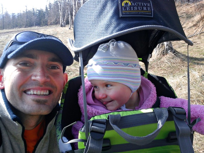 Oprócz kijaszków zakupiłem, z myślą o nadchodzącym sezonie, nosidełko turystyczne, dzięki któremu będę mógł łączyć swoje pasje... zajmowanie się córeczką i wędrowanie po górkach. Zawsze marzyłem, aby moje dziecko było od najmłodszych latek wychowywane aktywnie i pośród natury... Zawsze wyobrażałem sobie spacery po lasach i górach, w wolnych chwilach... wszystko, byle nie gnicie w domu przed TV, a tym bardziej nad badziewnymi gierkami, wypłaszczającymi umysł naszych pociech... To były moje marzenia i wyobrażenia, a teraz mam nadzieję, że moja Misiunia będzie chciała tak żyć... ;) Na razie po trzech testowych wycieczkach, po okolicznych górkach, jestem zadowolony, że spokojnie siedzi w nosidełku, a nawet śmieje się i gaworzy be końca (gaduła... to chyba po mnie)... Owszem, zanim wyruszymy na jakiś dłuższy marsz, musimy się oswoić... nie tylko ona, ale również ja. Co prawda doświadczenie mam niemałe jeśli chodzi o wędrówki z plecakiem... tysiące kilometrów na szlakach sporo mnie nauczyło. Niemniej jednak wyrypa z plecakiem (nierzadko 25-30 kg) po bezdrożach, czy przez gęste zarośla to co innego niż ok. 13 kg na plecach (dzidzia, nosidło i duperele). Po pierwsze nieco inaczej ułożony środek ciężkości, a po drugie... na wszystko trzeba uważać... na gałęzie po bokach i u góry (by nie zmasakrować bąbelka), na stawianie kroków (by dziecku głowa nie odpadła podczas nadmiernej galopady)... i na wiele innych rzeczy ;) Niby tak niewiele, ale jednak trzeba się przyzwyczaić do nowej roli...