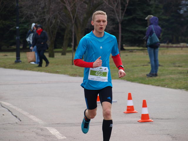 Wyjazd z Łodzi o 7 rano, noc przespana całkiem średnio (przed zawodami zawsze zbyt często się budzę) dojechaliśmy na 1,5h przed startem więc miałem sporo czasu na rozeznanie się w trasie jak również odbiór pakietu zrobienie rozgrzewki i ustawienie się na linii startu. Już podczas rozgrzewki czułem że marzec zostawił mocno odciśnięte piętno na mojej formie ze względu na niesystematyczne treningi spowodowana różnymi czynnikami (wypadek samochodem, wizyta w szpitalu po zatruciu, problemy żołądkowe) jednym słowem dużo akcentów odpadło psując w pewnym sensie moje przygotowania zimowe. No ale cóż trzeba było sprawdzić jak daleko moja forma uciekła do tyłu, zanim bieg się rozpoczął postanowiłem że pierwszy km może dwa pobiegnę asekuracyjnie by nie "zajechać się", po wystrzeleniu startera ruszyliśmy wydawało mi się że średnie tempo początkowe utrzymuję ale na 1km okazało się po spojrzeniu na zegarek ze było 3:37min/km czyli nie tak jak planowałem.. odrobinkę zwolniłem i okazało się że to chyba dobra decyzja gdyż za zakrętem pojawił się duży podbieg który kosztował wszystkich zawodników masę sił, po pierwszej pętli nie czułem się "wypruty" ale już troszkę podmęczony czułem ze mogę nie utrzymać tempa na pozostałych pętlach, no ale przyjechałem walczyć a przede wszystkim sprawdzić na jakim poziomie jestem w treningu po tych incydentach marcowych prawda?! :>
