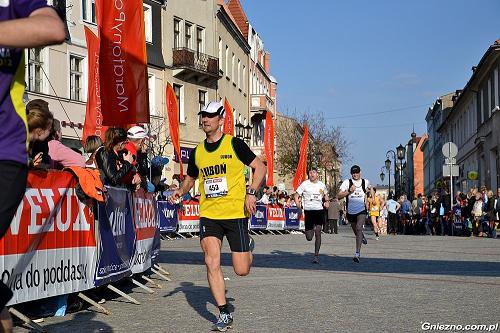 Jadąc do Gniezna byłem strasznie zmęczony fizycznie i psychicznie co nie napawało optymistycznie na sam bieg i na wynik jaki mogę uzyskać. Im bliżej było godziny „zero” tym bardziej i mocniej byłem zestresowany. Praktycznie w ostatniej chwili już na linii startu postanowiłem postawić wszystko na jedna kartę i ustawiłem się na początku stawki, żeby nie tracić energii i czasu na przebijanie się podczas początkowej fazy biegu. Pierwszy kilometr minął bardzo szybko i bez żadnych problemów. Podczas sprawdzania czasu na pierwszym punkcie oczom nie wierzyłem gdyż zegarek wskazał 3’50”. Szok dla mnie był o tyle duży, iż przy takiej prędkości nie czułem większego zmęczenia co potęgowało jeszcze większy apetyt na więcej. Wiedziałem jednak, że to dopiero początek i zmęczenie oraz kryzys może jeszcze nadejść i to szybciej niż się spodziewam. Po półmetku a dokładniej od 5,5km do 7km zaczęło pojawiać się zmęczenie i kryzys spowodowany wiatrem który wiał prosto w twarz. Pogoda nie była zła, ale na tym konkretnym odcinku było dość wietrznie, co chyba nie tylko ja odczuwałem, ale też większość zawodników. Po minięciu punktu kontrolnego na agrafce, który był usytuowany na 7km wiedziałem, że mam duże szanse powalczyć o złamanie życiówki na tym dystansie, co przed startem wydawało mi się totalną abstrakcją. Pamiętam jakie myśli przewijały mi się przez głowę tuż przed biegiem „aby tylko dać radę zejść do poziomu 40min to już będzie wielki sukces”. A tu proszę jest realna szansa na poprawienie czasu i zejście poniżej 40 min i to grubo poniżej. Ostatnie trzy kilometry była to maksymalna koncentracja nad techniką biegu i skupieniu się na oddechu. Wiedziałem, że jak dam z siebie max wszystko to będzie dobry wynik. I tak też było! Na ostatnim kilometrze wiedziałem już na 100%, że nic i nikt nie jest w stanie mi popsuć tego udało mi się wypracować przez ostatnie 9km. Na metę wbiegłem z istnym impetem (jak na mnie oczywiście) i z wielką radością. Jedyną rzeczą jaką sobie pomyślałem po zatrzymaniu było tylko to, że mogłem jeszcze troszkę mocniej spróbować zważając na to w jakim stanie byłem fizycznym i psychicznym. Wiem i mam świadomość, że euforia dawała się we znaki, ale wiem też jak czułem się przez cały wyścig i wiem że szanse na lepszy wynik były.