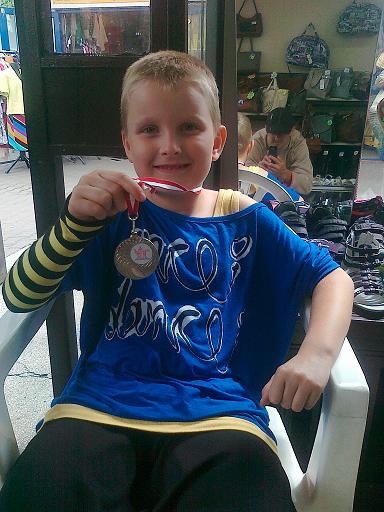 Jego pierwszy w życiu medal, na którego musiał ciężko zapracować i wylać wiele litrów potu. Opłacało się więc zrezygnować z wzięciu udziału w ostatniej edycji GP!!! Mimo, że to spowodowało mój brak klasyfikacji i wyłączenie z gali wręczenia nagród. ALE przecież to było WSPANIALSZE UCZUCIE!!! i to do tego jakże ważne, bo PIERWSZE W JEGO ŻYCIU!!!