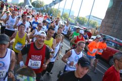 Ten szczególny dzień przywitał nas śliczną słoneczną pogodą. Zjedliśmy śniadanie, przebraliśmy się w stroje startowe i myśleliśmy już tylko o starcie. Dla mojego kolegi był to pierwszy historyczny maraton, dla mnie czwarty. Udaliśmy się na linię startu. Z każdą minutą czuliśmy coraz większy napływ adrenaliny do krwii. Wreszcie wystrzelił starter i wszyscy wystartowali. Zaczęliśmy razem ale szybko się zgubiliśmy w tłumie biegaczy. Z każdą kolejną chwilą było coraz cieplej, coraz goręcej, słońce było tego dnia bezlitosne dla maratończyków. Wolontariusze przy punktach żywieniowych z wodą mieli pełne ręce roboty. Osobiście widziałem kilka karetek jadących na sygnale, które spieszyły z pomocą mdlejącym biegaczom. Ja biegłem na tyle, na ile miałem sił. Jedynym moim marzeniem było złamanie 4 godzin. Przez jakiś czas obok mnie biegł mężczyzna przebrany za rzymskiego legionistę, w czerwonej pelerynie, z mieczem i tarczą. W taki upał - cóż za poświecenie!