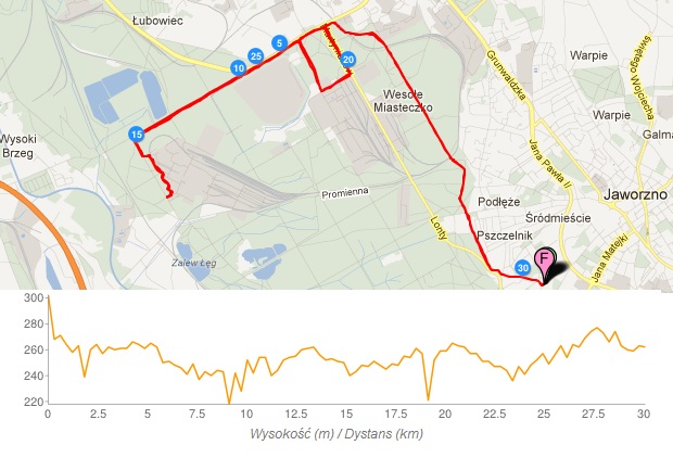 tyle ile mi zostało. Po 22km wbiegłem w mi do tej