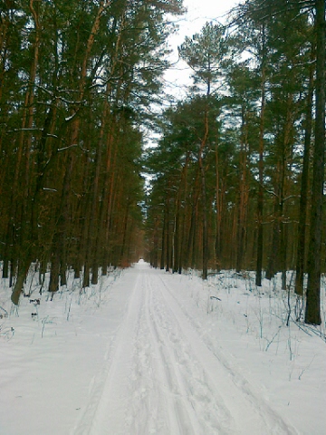 … Początkowo droga jest pokryta lodem. Im dalej zapuszczam się w las tym śnieg zmienia się w miękką kołderkę po której jeszcze nikt nie biegał. Momentami muszę naprawdę podnosić kolana wysoko żeby poruszać się do przodu, ale napieram, tempo cały czas przyzwoite.