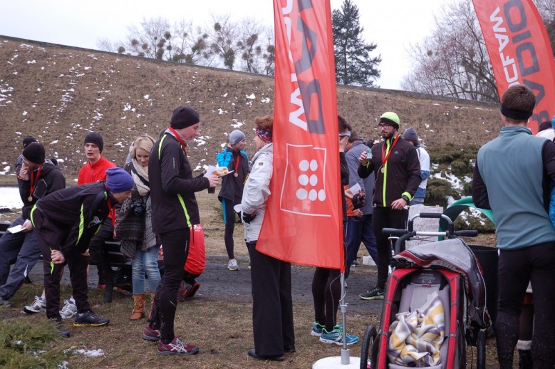Dzień wcześniej ułożyłem sobie plan przedbiegowy, który zakładał pojawienie się wcześnie w biurze zawodów,odebranie numerka startowego, powrót do domu, przebranie się i krótką rozgrzewkę po parku przed biegiem. Z planów nic nie wyszło, wstałem za późno, źle oceniłem czas na dojście po numerek i w efekcie przed startem zaliczyłem blisko 10 km marsz w żwawym tempie w temperaturze około 2-3 stopni Celsjusza brrrr a z rozgrzewki nici. Inna sprawa, że widok roztopionego śniegu zalegającego na większości trasy sprawił iż mojej chęci do startu zaczęło ubywać – dobrze że już wcześniej zapłaciłem wpisowe, bo pewnie skończyło by się inaczej.
