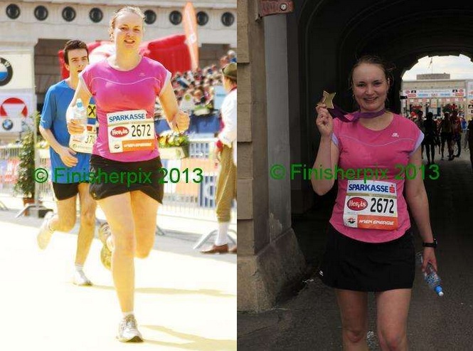 Po pokonaniu 21 km rozluźniło się i to znacząco. Czas troszkę wolniejszy niż w Poznaniu, ale nie można porównywać połówki z maratonem. Trzeba sobie przecież zostawić zapas energii. Tej starczyło do około 39 km. Do Prateru i przeklętej agrafki (32-36 km) jakoś biegłam, a potem to była walka z samą sobą o dotarcie do mety. Nad Kanałem Dunajskim wykończył mnie lekki podbieg. Ostatnie 3 km to było człapanie się do mety w iście ślimaczym tempie. Kibice byli cudowni - dopingowali ile sił w płucach i rękach. Krzesałam jakieś resztki sił sama nie wiem skąd. Próbowałam robić dłuższy krok czy szybciej przebierać nogami, ale upał był jak na kwiecień kosmiczny.