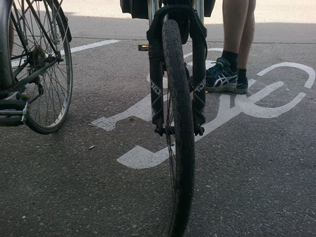 Spokojnie przedostaliśmy się przez rozlewiska i pomału jechaliśmy do Augustowa. Po drodze z Damianem i Kubusiem rozpracowaliśmy 4 piwka na spółkę, Artur nam mocno odskoczył. Dopiero 15km dalej przy spożywczaku go znaleźliśmy. Kończył jeść. Zostawiliśmy rowery w stojakach i poszliśmy również coś przekąsić. Godzina odpoczynku to było dużo. Po akcji z łańcuchem straciliśmy bardzo dużo czasu, jak się zaraz okaże traciliśmy go dalej. Najpierw moje koło. Co się stało? "Chińska ósemka". Przednie koło wygięło mi się w esskę. Tył roweru był bardzo obciążony, sakwy,itp. Stojak bardzo niski i tak wąski, że ledwo wepchnąłem w niego oponę. A mogłem go gdzieś oprzeć. Damian niechcący lekko popchnął mój rower, ten się przewrócił, ale koło zostało na miejscu, jedynie mocno się zniekształciło. Co teraz robić? Kupić nową obręcz? Zabić Damiana i wziąć jego rower? Może zabrać Kubusiowi rower? W końcu jechał moim drugim sprzętem. Nic z tych rzeczy... Do Augustowa miałem 15km, nawet nie zamierzałem tam jechać po nową obręcz. Odkręciłem koło, włożyłem je ponownie do stojaka i ręcznie naprostowałem. Elastyczna stal bardzo mi w tym pomogła. Pięć minut i gotowe. Założyłem koło i ... i da się jechać. Nie ma co dłużej czekać, jedziemy dalej, już późno, a do granicy jeszcze 60km. Coraz mniej prawdopodobne byśmy ją przekroczyli tego dnia. Wracając do akcji z kołem. Wiecie co było najlepsze w całym tym zamieszaniu? Ani na chwilę nie straciłem dobrego uśmiechu, cały czas się śmiałem i żartowałem z tej sytuacji. W końcu to była nasza przygoda, a nie wyścig:)