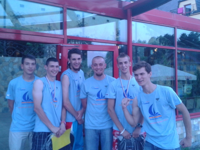 Zdjęcie z kolegami z pokoju, z sąsiadami no i z organizatorem biegu - Bartkiem :)