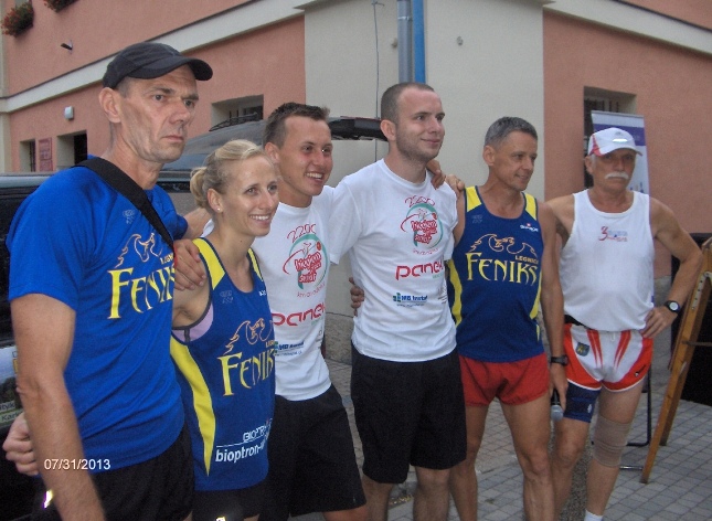 Na ten dzień czekałem szczególnie. Minęło równe dwa lata jak spotkałem niesamowitego Karola z kolegą, którzy biegli od wschodniej granicy Polski do zachodniej dla chorego Dominika. Dziś 31 lipca 2013 r. - Karol znów jest na trasie, biegnąc w szczytnym celu - dla chorej Oli i Kasi. Trasa to szczególna - bo dookoła Polski - 2218 km ! W planie 32 dni biegowe ze średnią dnia ponad 60 kilometrów !!! Dzisiejszy I etap biegu to trasa Wrocław - Osiek, a więc prawie koło naszego domu ! Szykujemy się więc z kolegami z naszego klubu - Feniks Legnica aby zgotować odpowiednie przyjęcie biegowym bohaterom. Na miejsce powitania Karola i Maćka wybieramy miasteczko Prochowice. Kilka słów z Panią Burmistrz Alicją i jest "zielone światło" dla naszych powitalnych poczynań. Drukujemy ulotki informujące o akcji, ustawiamy nagłośnienie i już po chwili słychać nas na całe miasteczko Prochowice. Budzimy zainteresowanie zarówno dorosłych i dzieci - w międzyczasie rozdając ulotki, informujące o celu biegowej akcji Karola i Maćka. Nasza koleżanka Weronika w oczekiwaniu na naszych bohaterów przeprowadza fachową rozgrzewkę, która rozpala do czerwoności publiczność, a zwłaszcza dzieciaki - nie odstępują Weroniki na krok ! Na Rynku pojawia się Pani Burmistrz Alicja z prezentami dla Karola i Maćka ..... w formie owoców, napoi i izotoników. Niesamowicie trafiony prezent na tak ciężką trasę Karola i Maćka. Biegacze Feniksa też kompletują "biegową paczkę". W końcu mamy sygnał że chłopaki są tuż tuż. Wybiegamy na spotkanie chłopaków na przedmieścia Prochowic, a wraz z nami niezliczona ilość dzieciaków - niesamowite ! Wbiegamy na prochowicki Rynek wśród owacji publiczności na rzecz Karola i Maćka - a potem nie kończące się autografy, zdjęcia i wywiad dla lokalnej prasy. Po krótkim odpoczynku jeszcze runda honorowa wokół Rynku - oczywiście z Karolem i Maćkiem na czele i niezliczoną ilością dzieciaków wokół naszych bohaterów. Po chwili wybiegamy z małego sympatycznego miasteczka Prochowice, które tak gorąco przyjęło Karola i Maćka. Biegniemy z chłopakami do końca etapu czyli do Osieka - jakieś 15 km. Jest już ciemno, ale humory dopisują są opowieści o wrażeniach dnia i dowcipy. Grupę prowadzi nasza sympatyczna Feniksjanka - Weronika, z kolorowymi światełkami na ramieniu - tak lepiej nas widać. W Osieku również oczekuje komitet powitalny z Gosią na czele, u której przenocują dziś nasi biegowi bohaterowie - Karol i Maciek. Chłopcy są zmęczeni więc szybko się żegnamy i wracamy do domu - teraz już autkiem z naszym Feniksem - Grzesiem. Po drodze "przeżywamy jeszcze raz" dzisiejszy dzień, po raz kolejny chyląc czoła przed Karolem i Maćkiem którzy dla Oli i Kasi biegną dookoła Polski. Być może w najbliższych dniach będą przebiegać gdzieś obok naszych kolegów biegowych w Polsce - warto przebiec z nimi kilka kilometrów w tak szczytnym celu. Więcej o akcji każdy przeczyta na www.biegiemprzezswiat.pl