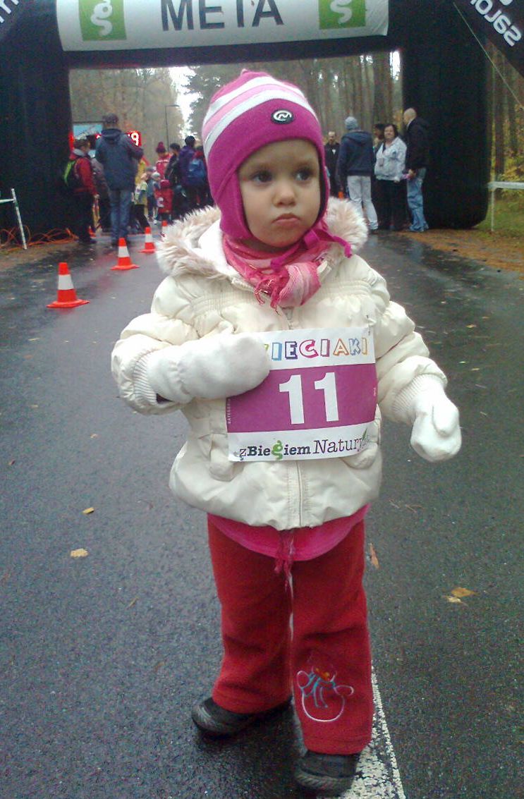 Michalinka dostała na mecie pysznego lizaka i rogala z czekolad±. Rzadko dajemy jej słodycze ale w tym wypadku nie potrafiłem być stanowczy :)