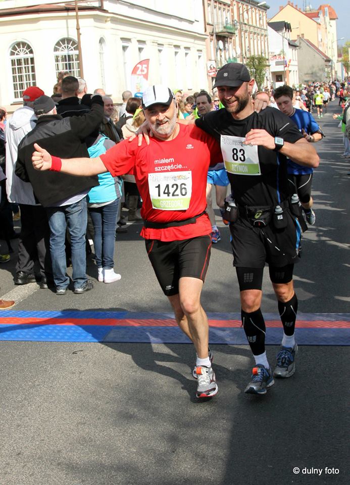 Przebiegłem maraton w Dębnie. Ja, kiedyś chuderlawy chłopaczek mam na szyi medal najstarszego maratonu w Polsce. Chociaż mój czas to tylko 4:05 i jest czasem poniżej moich oczekiwań to szybko wraca świadomość, że przebiegłem królewski dystans w Stolicy Polskiego Maratonu. Spełniłem swój marzenie.