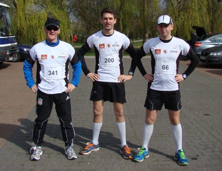 Pozostało mi czekać na Łukasza i Wojtka. W międzyczasie kibicowałem na finiszu … miło było spoglądać na uśmiechnięte twarze zawodników. Nie ma różnicy czy ktoś wbiegł na 41 czy 59 min – liczy się, że podjął walkę ze sobą i zmierzył się dystansem. Łukasz wbiegł w ok 49 minucie, Wojtek 5 min później. Na mecie jak zwykle gratulacje i specyficzne żarty typu…”co ? 40 nie złamałeś? Tak słabo? :D Ze względu na moją naturę miałem bardzo wyraźny banan na twarzy. Brakowało mi ostatnio tak pozytywnego akcentu. Cieszyłem się z kolejnej życiówki Wojtka i wyniku Łukasza jak za starych dobrych czasów – Japan Promotion Team w akcji. Zresztą nie tylko u nas był pełen entuzjazm, na żnińskim rynku było więcej takich pozytywnie zakręconych ludków.
