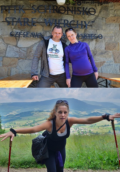 Będąc w 31 tygodniu ciąży, Mąż zrobił mi małą niespodziankę, a mianowicie wieczorem zaproponował mi wyjazd do Rabki Zdrój. Po chwili zastanowienia stwierdziłam czemu nie,… jedziemy i pochodzimy sobie po górach, powoli, bez pośpiechu, pooddychamy świeżym powietrzem. Na drugi dzień pobudka 5 rano, śniadanko i wyjazd w nieznane dla mnie tereny. Przyjechaliśmy na miejsce ok. 8.30, niedaleko czerwonego szlaku prowadzącego na Turbacz (1310 m n.p.m.). Zabraliśmy kije, coś do picia, kilka przekąsek i ruszyliśmy w drogę. Powolutku bez pośpiechu zwiedzaliśmy okolice, czerpiąc przyjemność z marszu. Nasz pierwszy cel to podejść do Bacówki na Maciejowej (852 m n. p. m) trasa ok. 5 km. Przejście tego odcinka zajęło nam 1:12 (4.11 km/h) – tempo idealne w moim stanie, choć przyznam się szczerze, że pod górkę oddech był głęboki, ale miarowy. Po drodze spotkaliśmy bardzo sympatycznego bacę z uroczymi kózkami. Chwilę pogawędziliśmy, po czym ruszyliśmy dalej w rytmie piosenki, którą nam zaśpiewał na do widzenia :-) Po dojściu do punktu i kontroli czasu, stwierdziliśmy, że odpoczniemy chwilę i ruszamy dalej w stronę Starych Wierchów. Kolejny odcinek mierzący ok. 4 km zajął nam niecałe 50 minut. Weszliśmy na wysokość 969 m n. p. m.