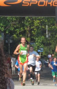 Ten dzisiejszy bieg w zasadzie niczego nowego mi nie powiedział, jeśli chodzi o formę przed maratonem, który już za miesiąc. Już przed startem, czując jaka jest temperatura (ładnie ponad 20 stopni i prawie bezchmurne niebo), wiedziałem, że to nie będzie dzień wielkiego triumfu. Zastanawiając się nad taktyką wymyśliłem, aby pobiec pierwsze 7 kilometrowe kółko dość asekuracyjnie, na drugim przyspieszyć, a na trzecim już z pełną mocą, na ile sił starczy. Plan się udał, ale niestety tylko w dwóch trzecich. Pierwsza tercja wyszła w średnim tempie po ok. 5:40 (tak właśnie miało być), druga po 5:30, a na trzeciej, którą bardzo chciałem pobiec jeszcze 10 s na kilometr szybciej, niestety zwolniłem do 5:35. Dało to w sumie ostateczny wynik 1:57 z dużym hakiem, co mieści się najwyżej w dolnych okolicach granicy przyzwoitości. Na więcej nie było mnie stać, co wyraźnie odczułem na mecie, gdy nie bardzo wiedziałem co się ze mną dzieje i po raz pierwszy w życiu skorzystałem z pomocy służb medycznych sprowadzonych przez zaniepokojonych moim stanem znajomych (na szczęście okazało się, że wszystko ok). Mogę się więc tylko cieszyć, że nie zacząłem szybciej, bo wtedy mogłoby się to skończyć naprawdę bardzo źle.