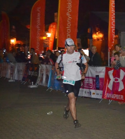 Najgorszym elementem takich startów jest dla mnie pobudka o 2 w nocy, chociaż zazwyczaj nie marudzę i na autopilocie wykonuję zaprogramowane czynności. Jest ciepło, ale mimo to zakładam cienki długi rękaw. Wiem, że do góry już tak dobrze może nie być. Start w grupie ok. 800 zawodników. Powoli w dół ulicami Krynicy do pierwszego podbiegu. Robi się wąsko i to tłum dyktuje przejście do marszu. Nie spieszę się, oszczędzam siły. Tak wężykiem poprzez zbieg docieramy do Złotego Potoku. W ciemnościach jakoś nie dostrzega i nie czuję się błota. Maksymalne skupienie. Kolejny podbieg pokonuje trochę szybciej mijając trochę stawki. Właściwy atak na Jaworzynę zaczynam od nabrania wody w buty w małym strumyczku płynącym przez trasę. Wiedziałem o nim, starałem się go ominąć na sucho, ale jakoś wpadłem. Długi ślimaczy marsz pod górę urozmaicany jest mijaniem setkowiczów przez zawodników z krótszych dystansów. Co jakiś czas zażywam magnez i BCAA. Po godzinie wcinam pierwszego batonika. Po półtorej godziny wspinaczki docieram na Jaworzynę. Teraz już będzie lekko do Rytra. O tak! Trzeba sobie wmawiać takie rzeczy. Po ciemku, w błocie nic nie jest lekkie. Nawet czołówka tego dnia niewiele mi daje. Jestem ślepy jak kret, dlatego jeszcze bardziej zwalniam. Kolega Krystian dziwi się, że pierwszy raz widzi mnie biegnącego tak spokojnie. Dotarcie na pierwszy punkt odżywczy na Halę Łabowską ciągnie się w nieskończoność. Niby to tylko 12km, ale przy niekończących się małych podbiegach i zbiegach przeradza się w daleki dystans. Robi się powoli jasno. Czołówka zaczyna być zbędna. Krótki pobyt na punkcie bez zbędnego ociągania się i znowu seria niekończących się pagórków wynagradzanych przez przepiękne widoki dolin zasnutych mgłami. Co niektórzy przystają i robią zdjęcia. Ja nie mam na to ochoty, zresztą muszę oszczędzać baterię w telefonie. Zbieg do Rytra zaczyna się łagodnie, bezproblemowo, by nagle przejść na błotnistą stromiznę, na której niewiadomo jak postawić następny krok. Ześlizguje się w dół starając się nie nabić sobie ani nikomu innemu guza. Asfalt. Z jednej strony chwili wytchnienia od korzeni, kamieni i błota, z drugiej przy butach nienadających się na taką nawierzchnie wymaga delikatnego stawiania stóp. Dwa lata temu to tutaj na 3km przed metą zaczęły mnie łapać skórcze. Kupuję Pepsi w miejscowym sklepie i po 5 godzinach i 5 minutach docieram na przepak w Rytrze. Ktoś stwierdził po biegu, że nie wyglądałem w tym miejscu najlepiej. Poddać się? Nie. To dobijało się do głowy, ale w ogóle nie wchodziło w grę… to by bolało bardziej niż ból fizyczny. Zmieniam koszulkę, tankuje camelbacka, uzupełniam zapasy jedzenie, z bułką w ręce odmeldowuję się znajomym, którym jakby się nie spieszyło i czym prędzej uciekam w dalszą podróż.