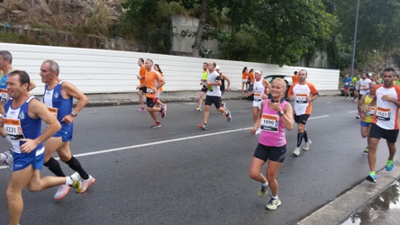 Same zawody… warte udziału. Zawsze to nowe doświadczenie, nowe zawody w nowym kraju… Na starcie pojawiło się prawie 5000 biegaczy. Oprócz połówki można było pokonać dystans mini maratonu, w którym brali udział chodziarze amatorzy, jak to stwierdziła moja druga połówka, swobodnym spacerkiem pokonał na trasie większość startujących Punkty odżywcze z wodą i izotonikami co 5 km, a na mecie piękny medal i pakiecik odżywczy z bananem i napojem izotonicznym, do tego niska opłata startowa – 17 euro, a w zamian darmowa koszulka z technicznego materiału i … czego chcieć więcej Co mnie rozbroiło na łopatki … mydełko dołączone do pakietu startowego, przecież biegacz myć się musi, sugestia że przed startem…hmmm… trzeba się porządnie namydlić? No przecież tyle kamer na starcie wymagało dobrej, a raczej pachnącej prezencji