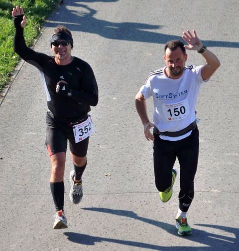 Ruszyli¶my wszyscy delikatnie, ja razem z Romkiem, równo. Bez ci¶nienia tak jak przystało na długodystansowca :-) Słoneczko ładnie zaczęło ¶wiecić, a wkrótce i grzać. Biegli¶my rozmawiaj±c o mijaj±cym sezonie itp. Postanowiłem pierwsze kółko zrobić w tempie Romka, a potem zobaczymy. Plan był prosty – przebiec cały dystans i tyle. Postoje miałem tylko w punktach wolontariuszy gdzie szybko dostarczałem paliwa i wody i nawet na pierwszym okr±żeniu było Izo ale się skończyło… :-( 1/2 biegu kończę z czasem 2:04 a jest to ta lżejsza połówka. Ruszamy na drug± rundkę… Słoneczko już nieĽle daje, ciepełko też bije po gębie, ale czuję, że dam radę. Patrzę tylko za kolejnymi punktami z wod± i czekolad±. Gdzie¶ na 27 km Romek przyspiesza, choć raczej to ja zwalniam. Czuję już nogi i zmęczenie, ale… walczę. Jeszcze jeden zakręt, jeszcze jeden podbieg i ostatni postój gdzie¶ na 35 km. Już jestem nieĽle zmachany, ale ruszam w ostatni± trasę do Żwirowni (tam zawsze w lecie pływam :-) ) Nad jeziorem już tylko walczę ze sob±, zawracam za jeziorem i… ostatni łyk wody z bidonu i ostatnie 3 km do mety niestety na zmianę bieg i marsz. Po prostu walczę z bólem nóg, pleców i ogólnym wycieńczeniem. Na metę wpadam z czasem 4:35 my¶lę, że nieĽle. Na mecie witaj± mnie moje dziewczyny Żonka, Ola i Maja. Plan Prawie zrobiony zabrakło 3 km ale i tak wynik dobry… jak dla mnie i oczywi¶cie życiówka poprawiona o 43 minuty !