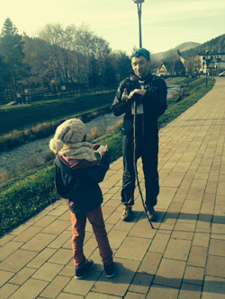 W Szczyrku dopadły mnie dzieciaki Adaś, Marysia i Ola (Ola, Marysia i Adaś – tak aby było po sprawiedliwości) oraz Gosia. Byłem zmęczony, chociaż nie tak jak na zdjęciu, na którym wyglądam jak Hałabała z kijaszkiem w dłoni.